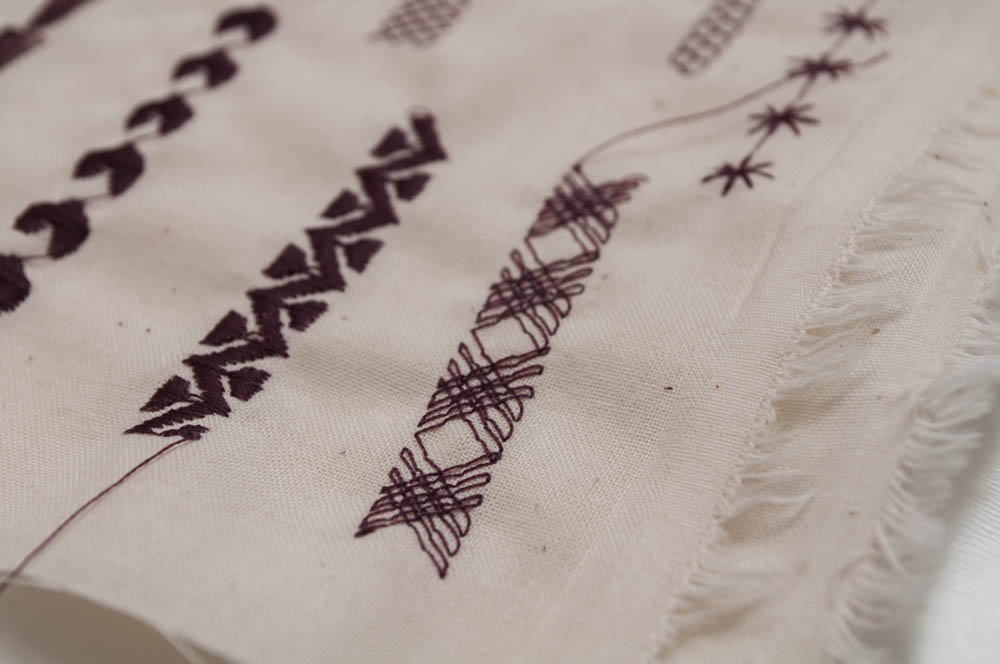 As for the stitch quality, well...just take a look above. It is impeccable! I created these samples using a doubled piece of muslin with no stabilizer, and already, the stitches look fabulous. Buttonholes are also a breeze on this machine (no more holding your breath!). You just pick which buttonhole you want to sew with the handy touchscreen, pop a button into your buttonhole foot and go. Just watch! (No hands, really!)