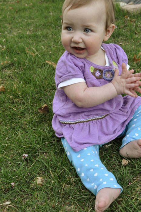 Harper is wearing a thrifted top by Genuine Kids by Oshkosh, and her pants were made by me using my new Baby Got Back sewing pattern. It’s a good thing her cuteness makes up for me when I’m having an off day!